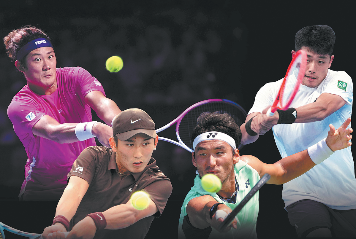 From left: Chinese men's tennis players Zhang Zhizhen, Shang Juncheng, Buyunchaokete and Wu Yibing are looking to end the "China Swing" on a high note during the "Golden Week" holiday, and rebound from a recent dip in form at the Rolex Shanghai Masters, Asia's only top-tier ATP 1000 tournament, which is set to kick off main-draw actions on Wednesday. [Photo/Xinhua]
